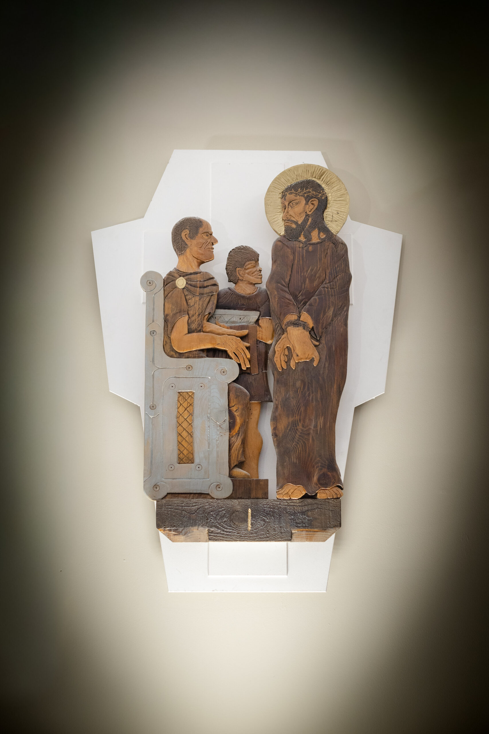Glenn then set about carving the Stations in order. A few months into the project, though, he hit a psychological roadblock. The strenuous work of portraying so much pain each day may have dredged up some of the scenes Glenn had witnessed in his own life, particularly in the military. A retired army major and a veteran of two tours each in Korea and Vietnam (where he was wounded), he says, “I don’t know for sure what it was. I was having trouble sleeping. And for almost a year I just stared at the work. I couldn’t put my hands to it.”